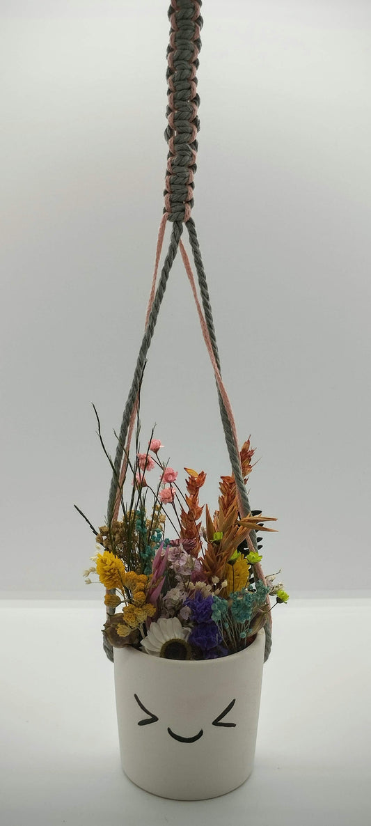 Hangpotje met Funny Face :-), droogbloemetjes & Macramé
