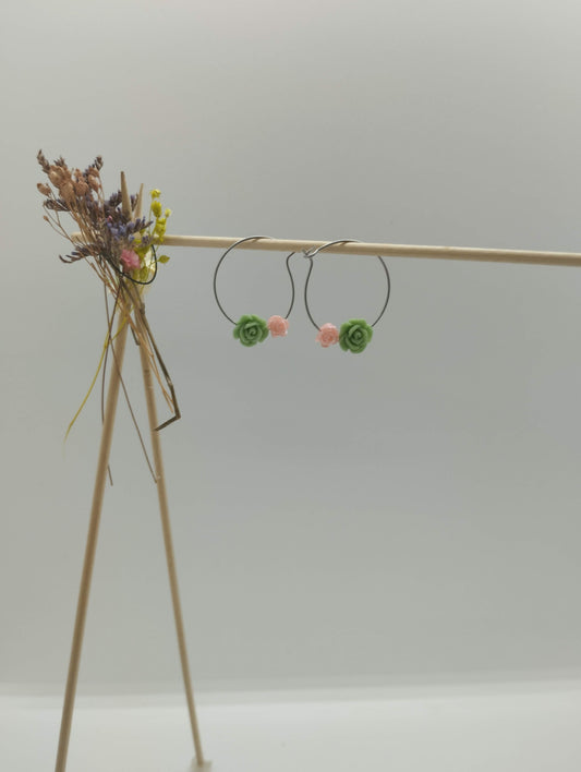 Oorbellenset bloemen - ronde Hangers (zilver - Nikkelvrij)