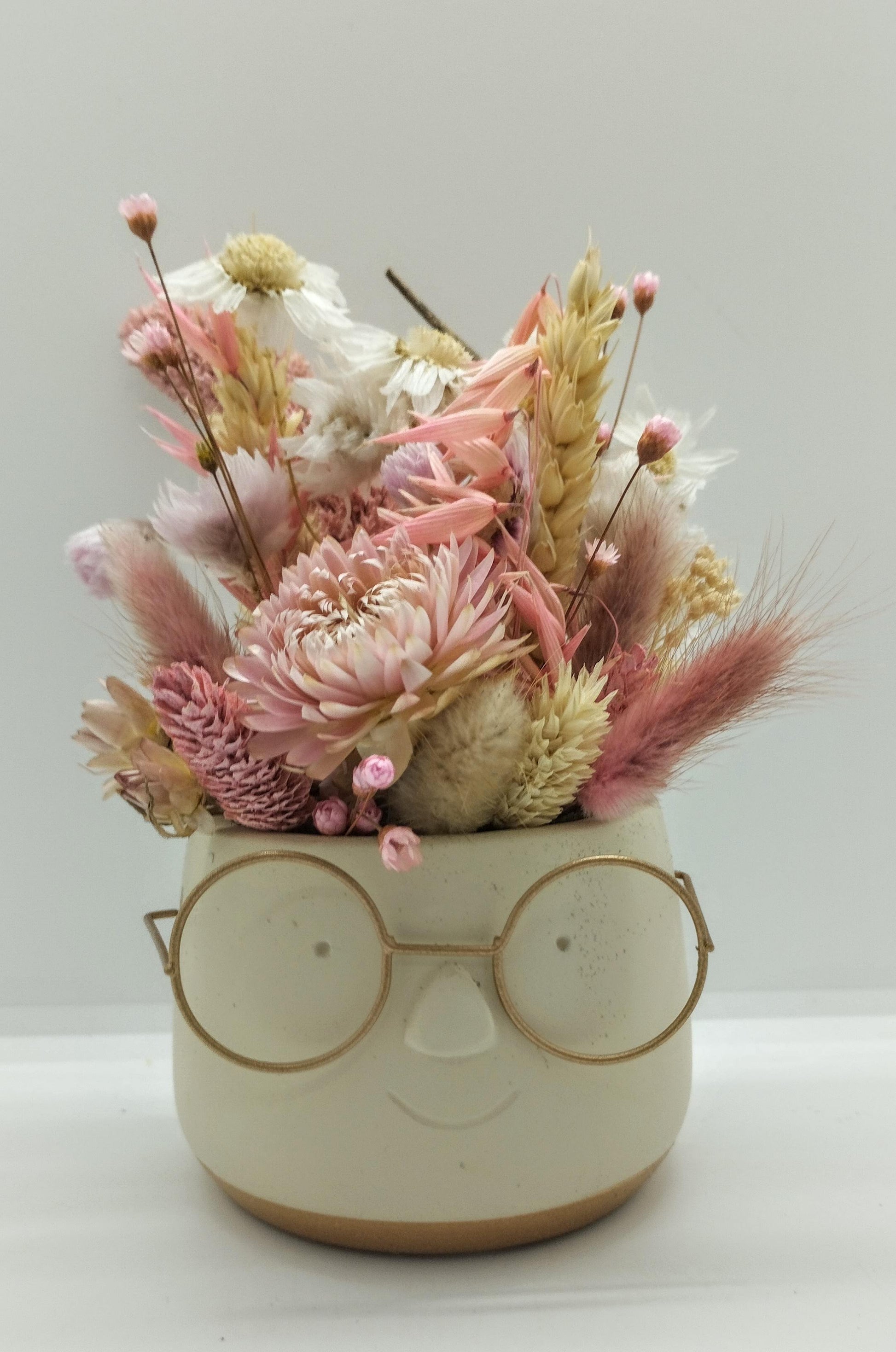 Plantenpotje met gezichtje & droogbloemetjes - Small