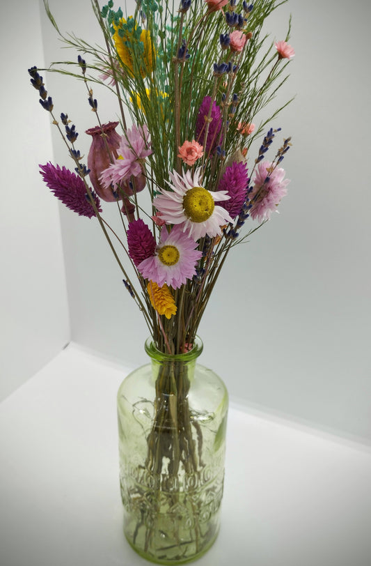 Sold outDroogbloemen in kleurrijk vaasje