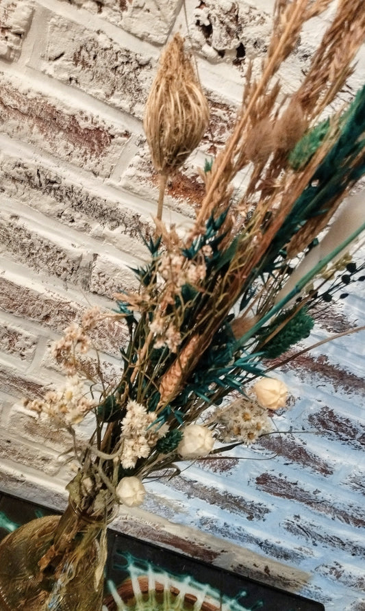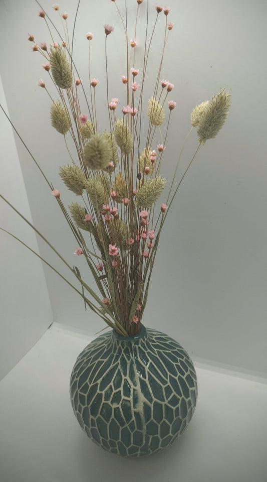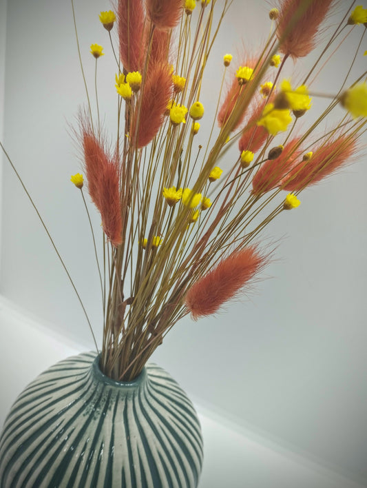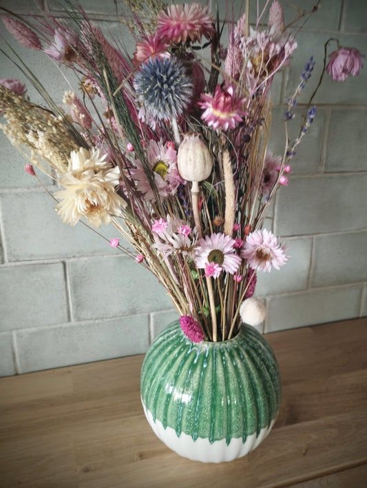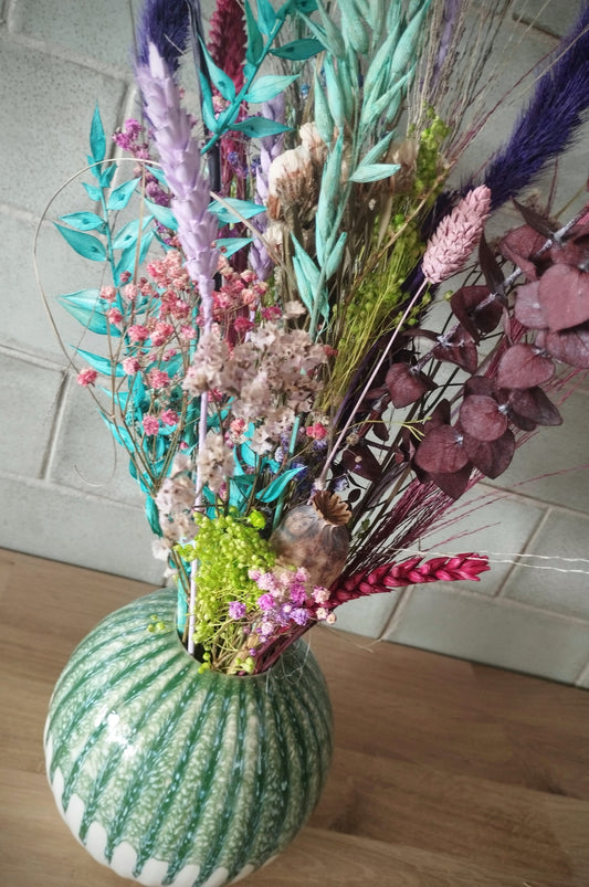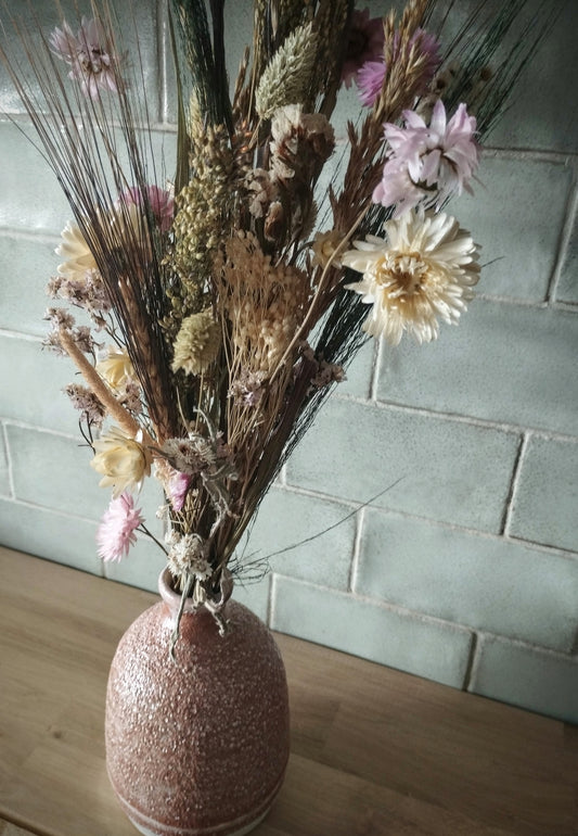 Droogbloemen in rood geglazuurd keramieke vaasje