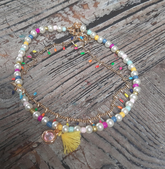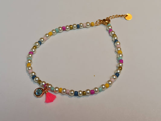 Enkelbandje Pastel - Parels & Kraaltjes + Multicolor Jasseron