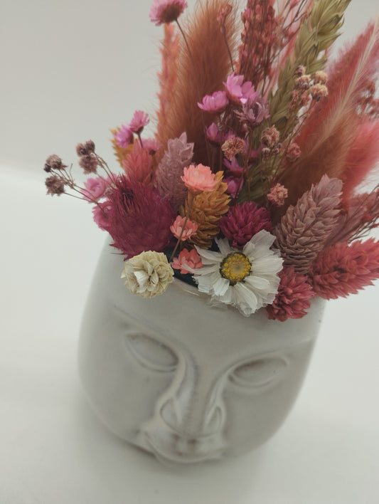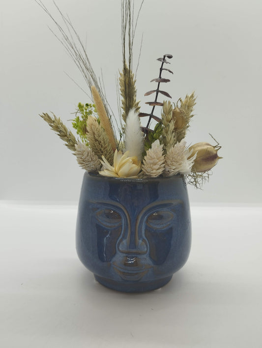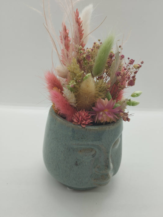 Geglazuurd Plantenpotje met gezichtje & droogbloemetjes