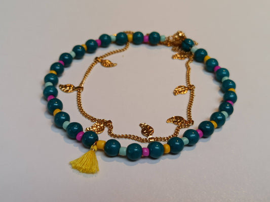 Enkelbandje Petrol - Parels & Kraaltjes + Multicolor Jasseron