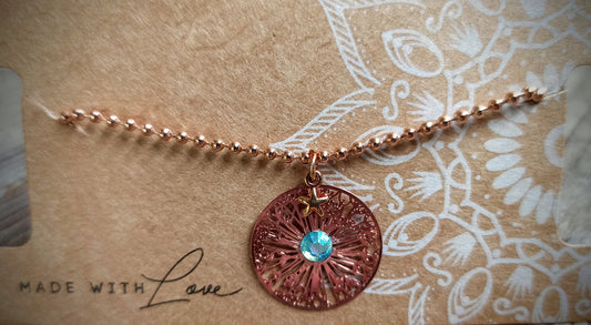 Ketting - Bohemian wish flower (Rosé)- swar. Aqua blue aurore 4,7mm