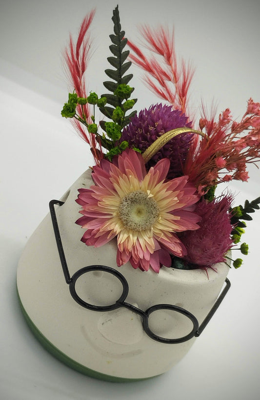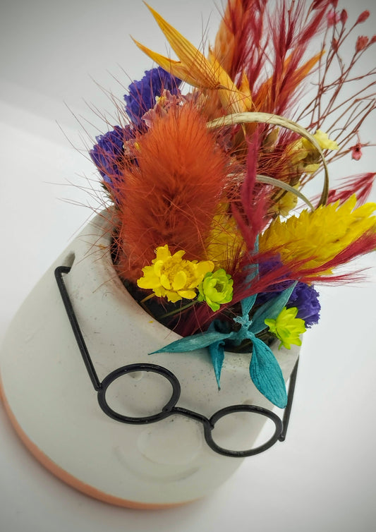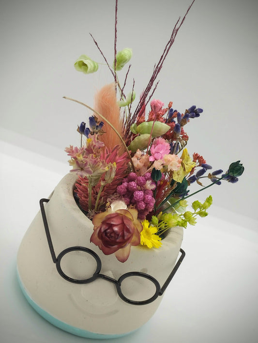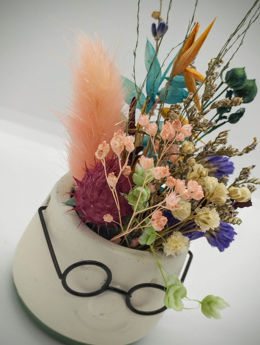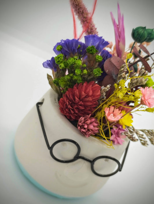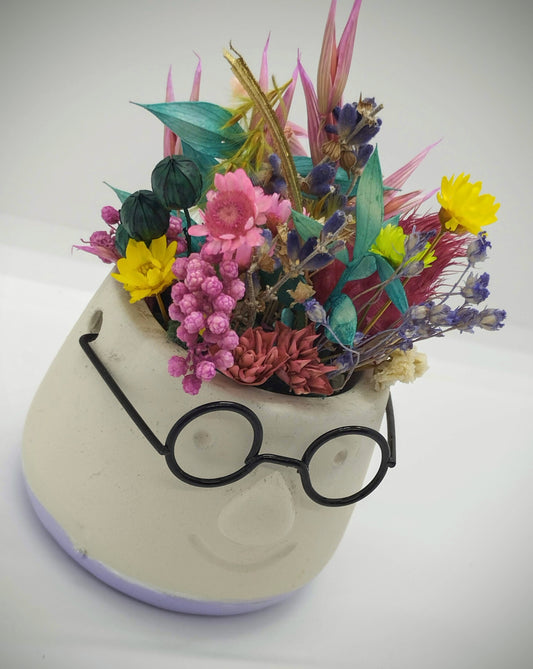 MINI Plantenpotje met gezichtje & droogbloemetjes