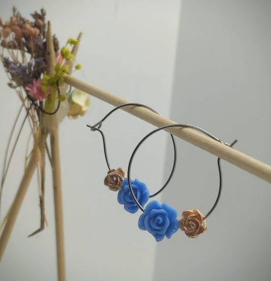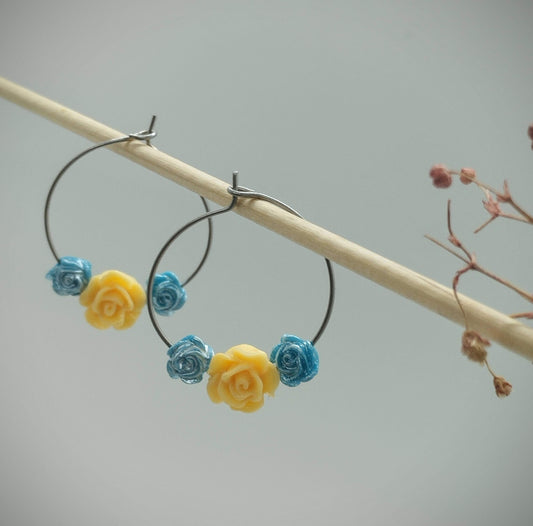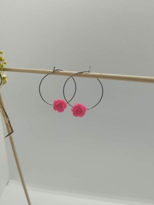 Oorbellenset bloemen - ronde Hangers (zilver - Nikkelvrij)