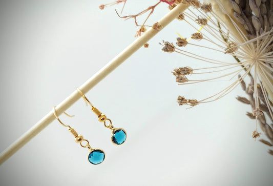 Oorbellenset Crystal Glass Blauw - kleine Hanger (Goud- Nikkelvrij)