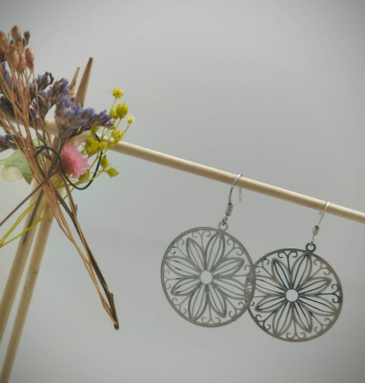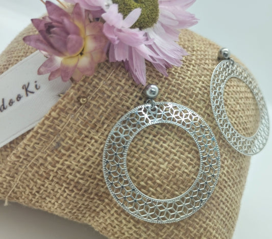 Oorbellenset geometrische cirkel - stekertjes/hanger (zilver- Nikkelvrij)
