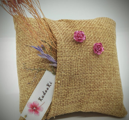 Oorbellenset Fuchsia Pearl Shine Roosjes - hangertjes (Zilver/RVS)