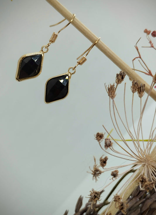 Oorbellenset Hangers CRYSTAL GLASS RHOMBUS Black (Goud/Rose - Nikkelvrij)