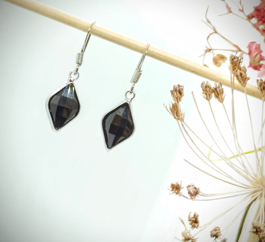 Oorbellenset Hangers CRYSTAL GLASS RHOMBUS Black (Zilvere - Nikkelvrij)