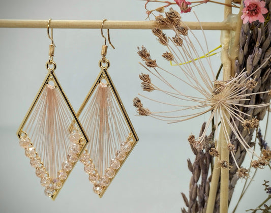 Oorbellenset MACRAMÉ RUIT EN FACETKRAALTJES Pink - hangertjes (Goud)