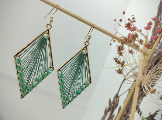 Oorbellenset MACRAMÉ RUIT EN FACETKRAALTJES Green - hangertjes (Goud)