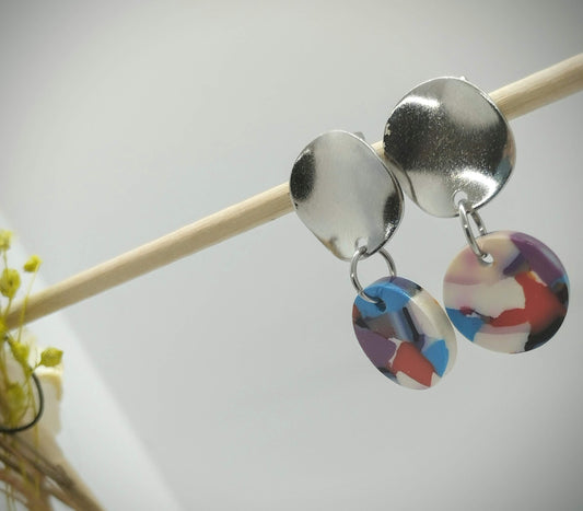 Oorbellenset Resin hangertjes Rond Mixed color (zilver - Nikkelvrij)