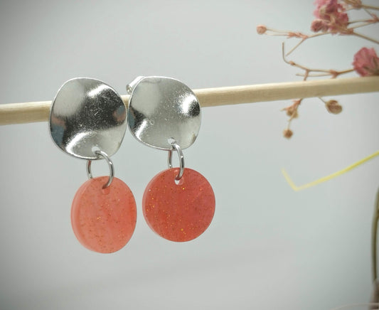 Oorbellenset Resin hangertjes Rond salmon red color (zilver - Nikkelvrij)