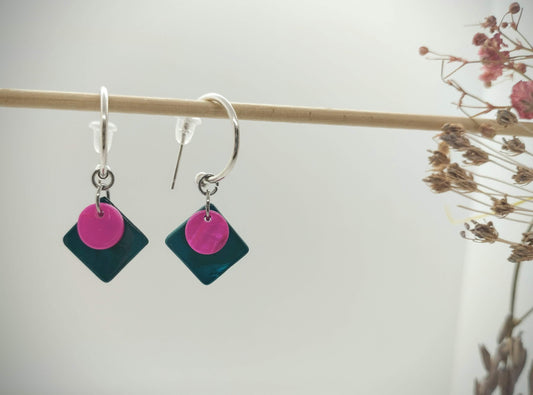Oorbellenset schelp hangertjes halve rondjes met felle kleurtjes (Zilveren - Nikkelvrij)
