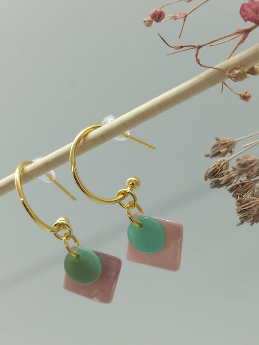 Oorbellenset schelp hangertjes halve rondjes met pastel kleurtjes (Goud - Nikkelvrij)