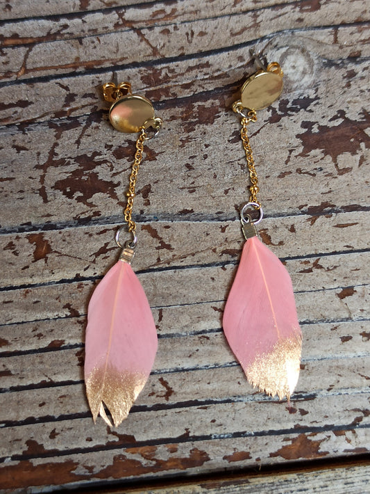 Oorbellenset Rose Pink Feathers - hangertjes (Goud)