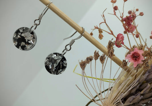 Oorbellenset Resin hangertjes Rond SILVER-BLACK (Zilver- Nikkelvrij)