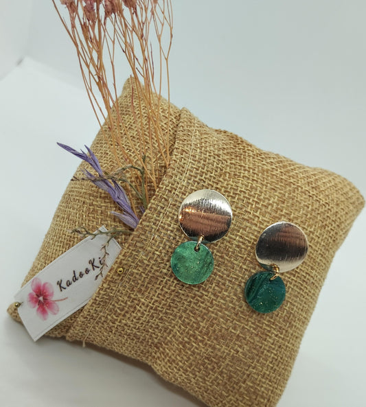 Oorbellenset Resin hangertjes Rond Ocean Green (Goud- Nikkelvrij)
