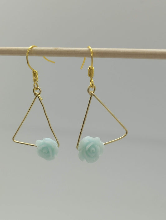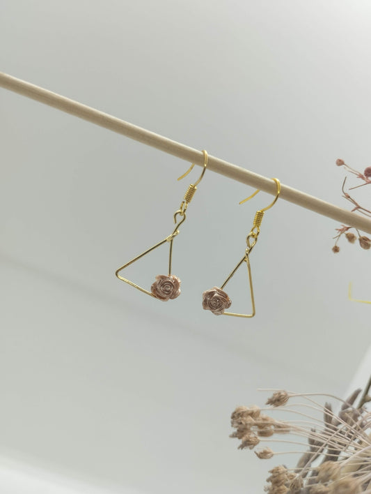 Oorbellenset triangle with flower - kleine Hanger (Goud- Nikkelvrij)