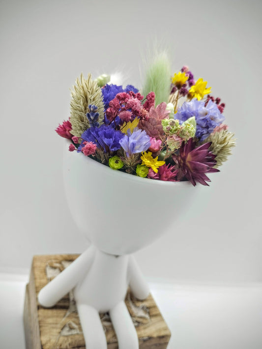 Plantenpotje mannetje met droogbloemen