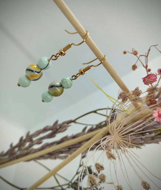 Oorbellenset trio Keramiek Turquoise / Yellow - hangertjes (Rosé/Goud)