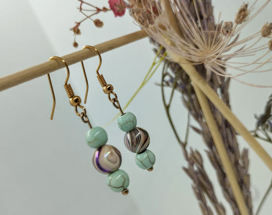 Oorbellenset trio Keramiek Turquoise / Brown - hangertjes (Rosé/Goud)