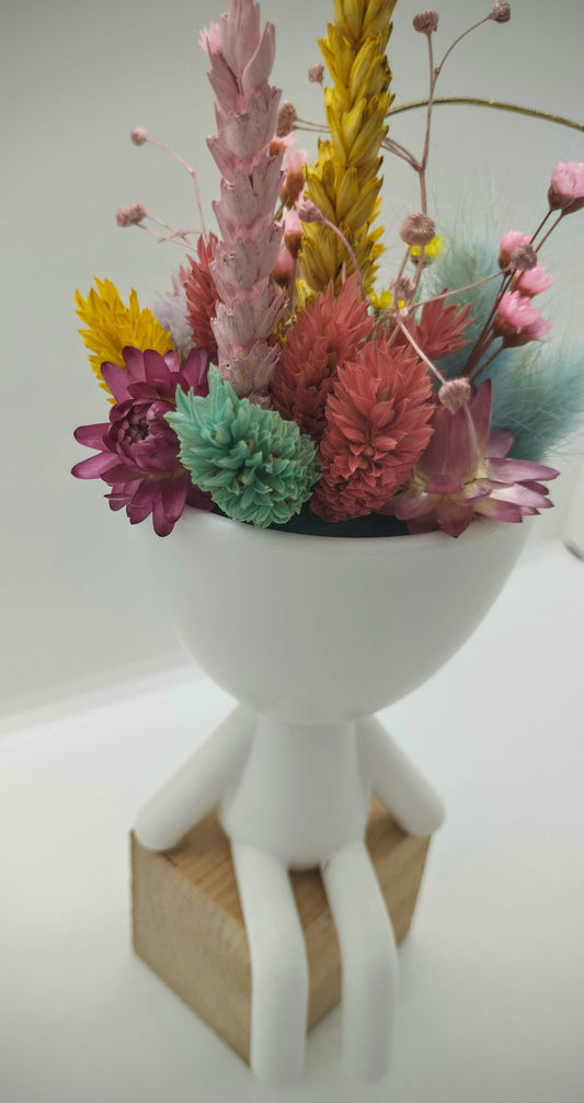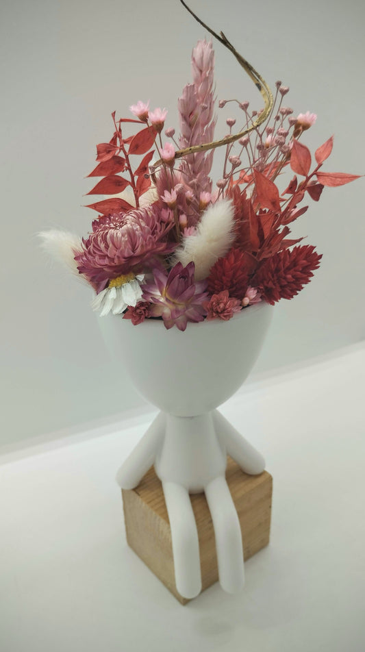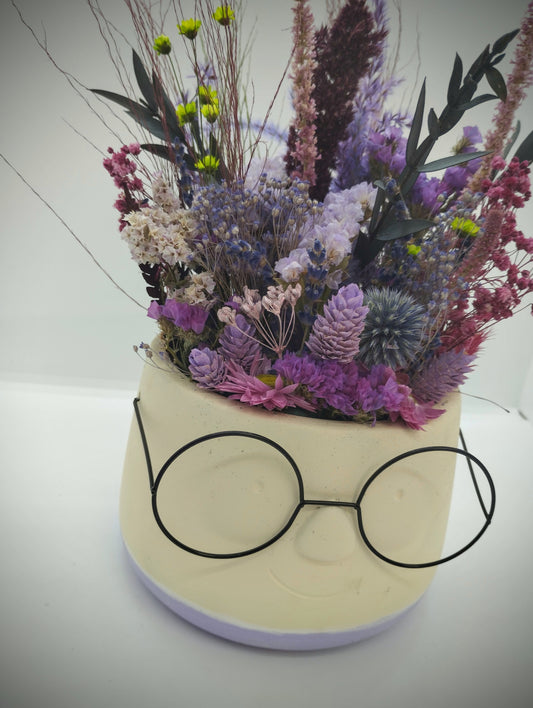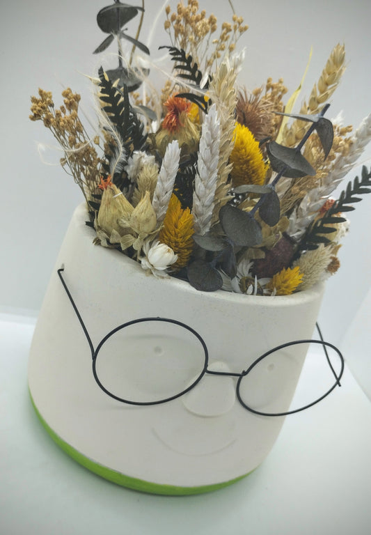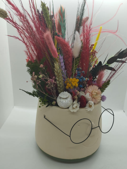 Plantenpotje met gezichtje & droogbloemetjes - Large