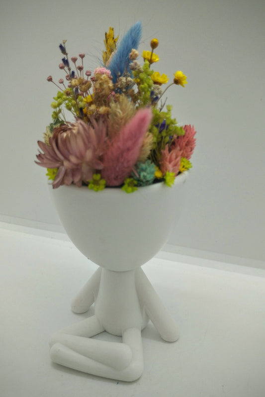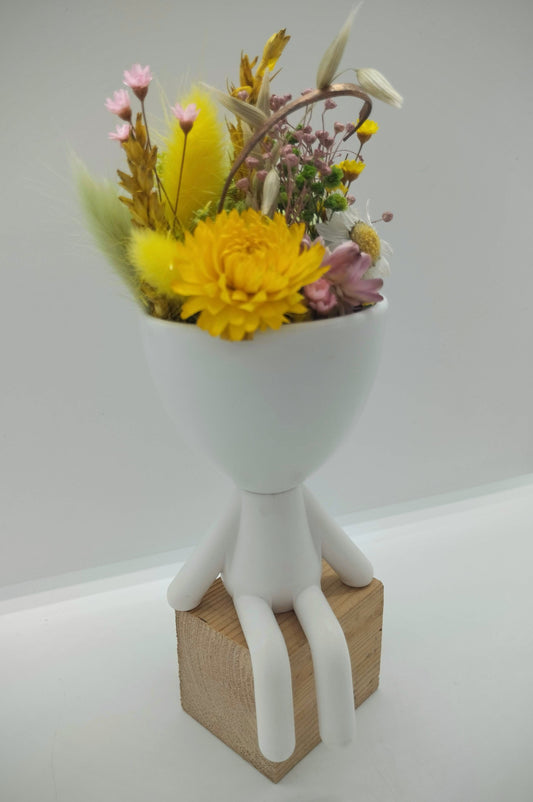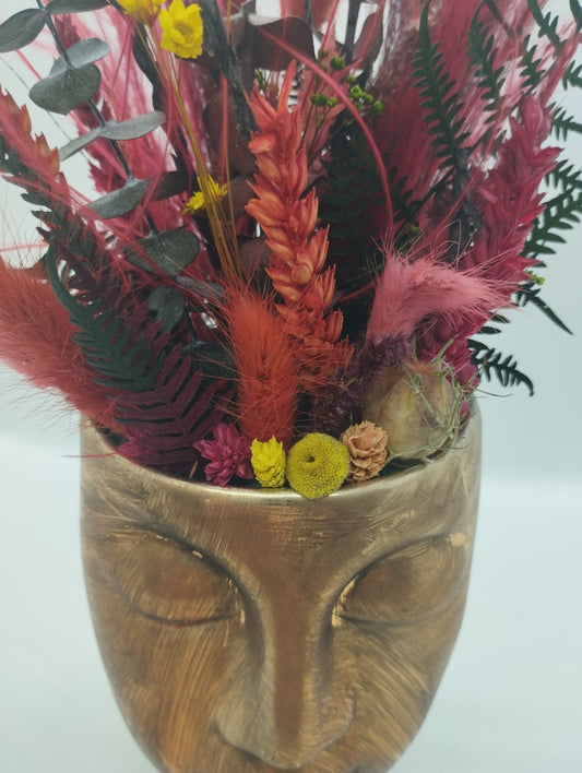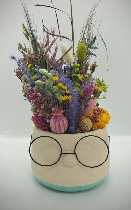 Plantenpotje met gezichtje & droogbloemetjes - Medium
