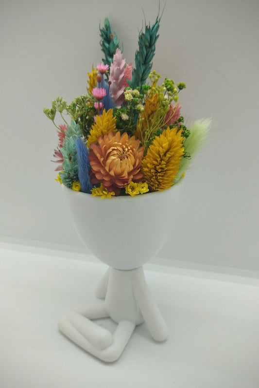 Plantenpotje mannetje met droogbloemen