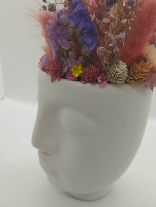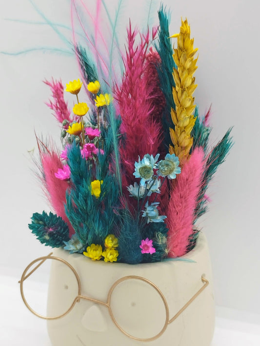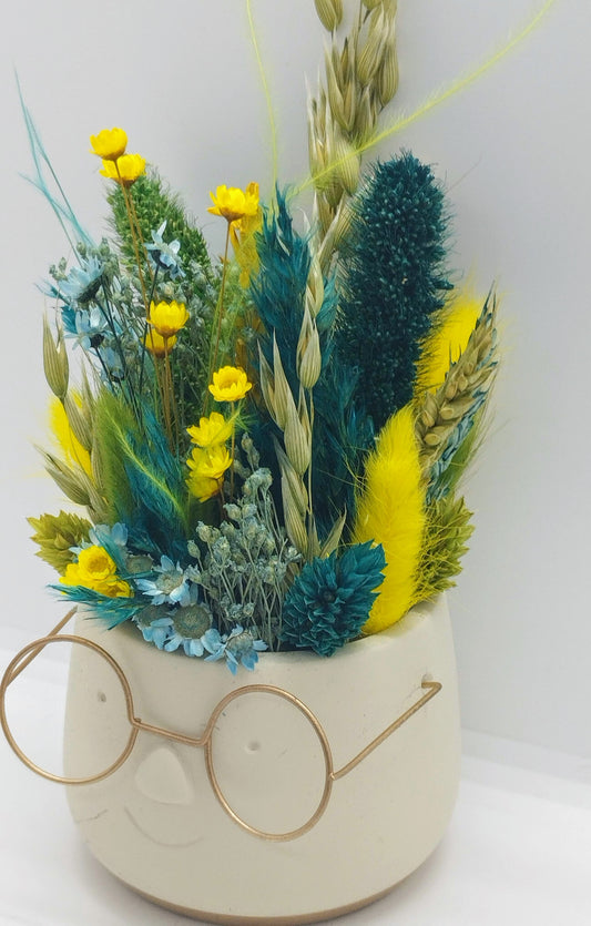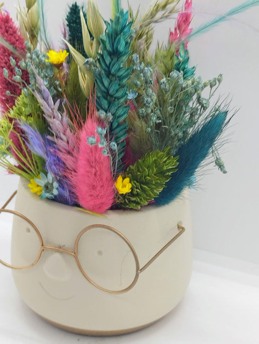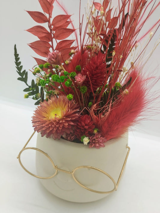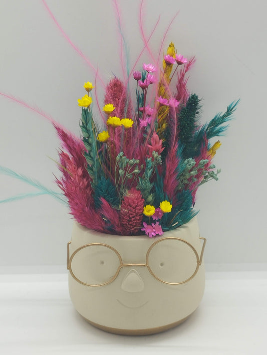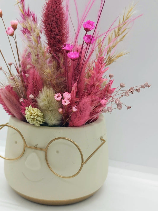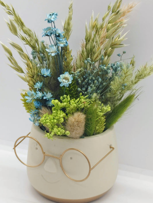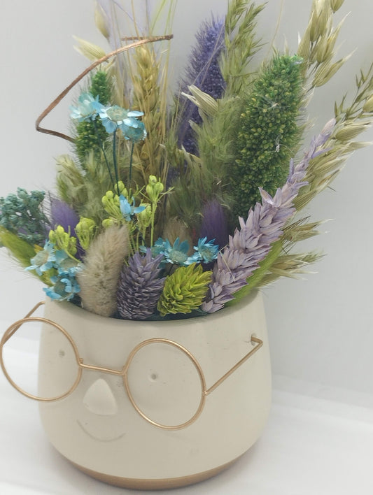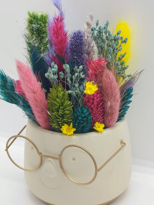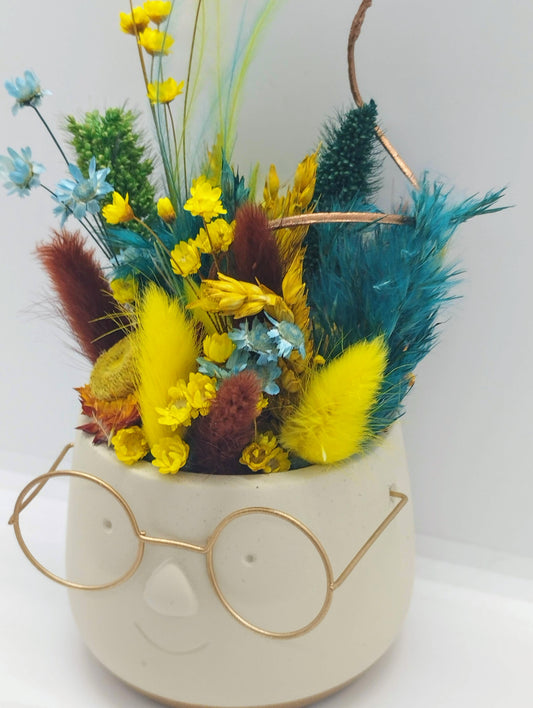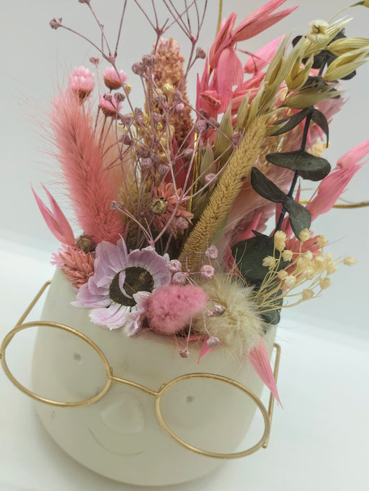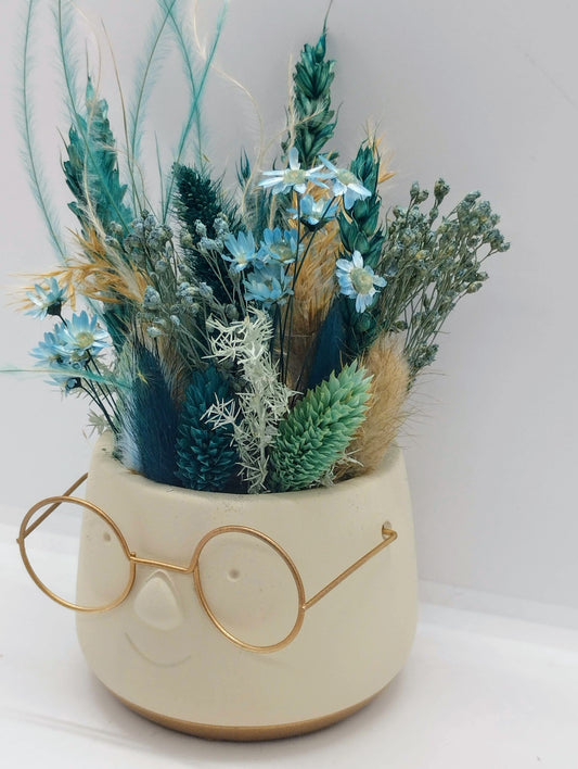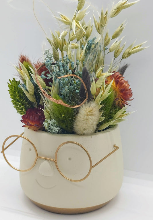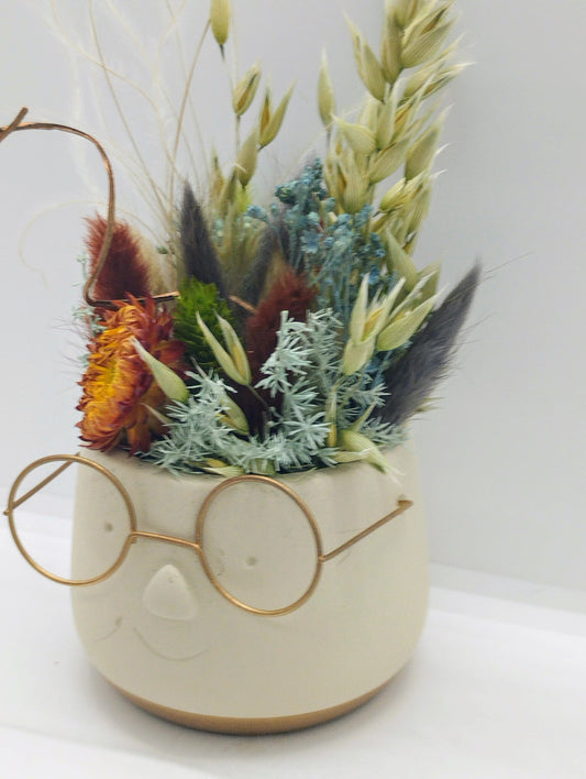 Plantenpotje met gezichtje & droogbloemetjes - Small