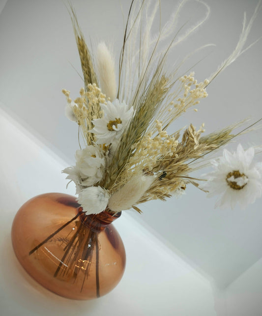 Combipakket : Decoratieve staander + vaasje met droogbloemen