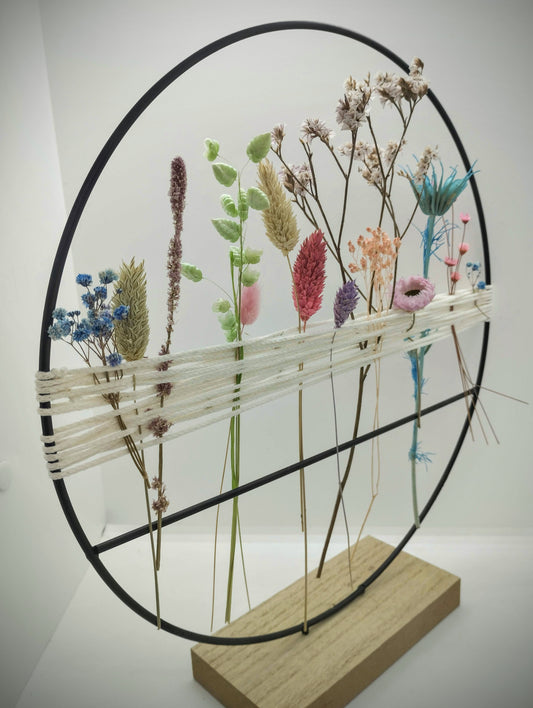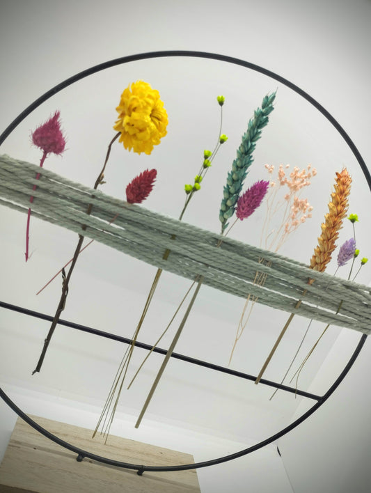 Hoopsie-Loop met droogbloemetjes en macramé (+ extra diverse reserve bloemetjes)