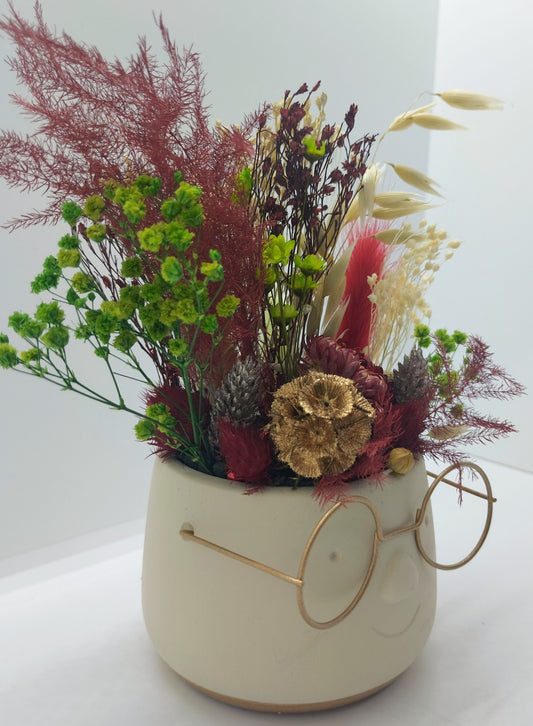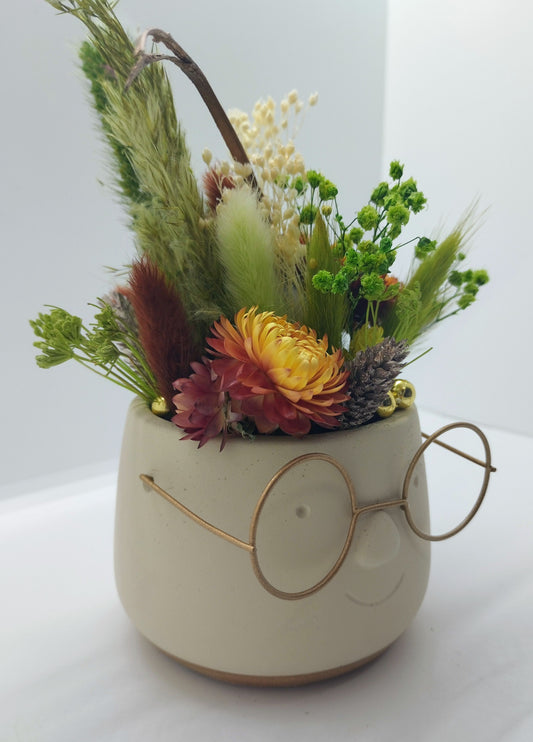 Plantenpotje met gezichtje & droogbloemetjes - Small