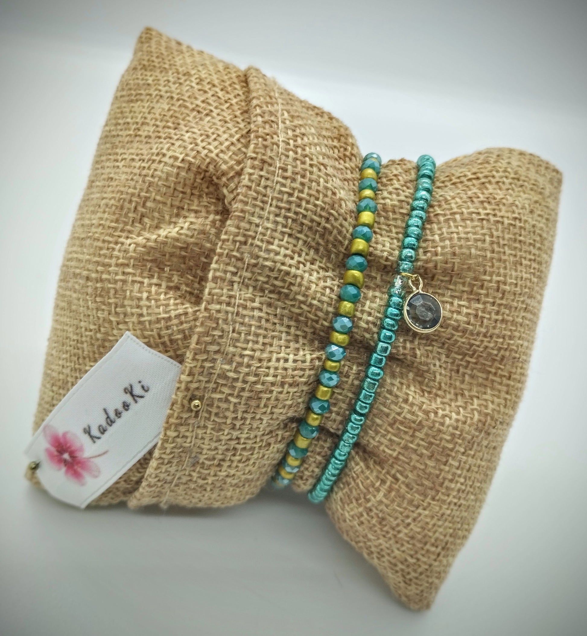 Deze armbandjes met leuke kleurtjes werden handgemaakt bij Kadooki.