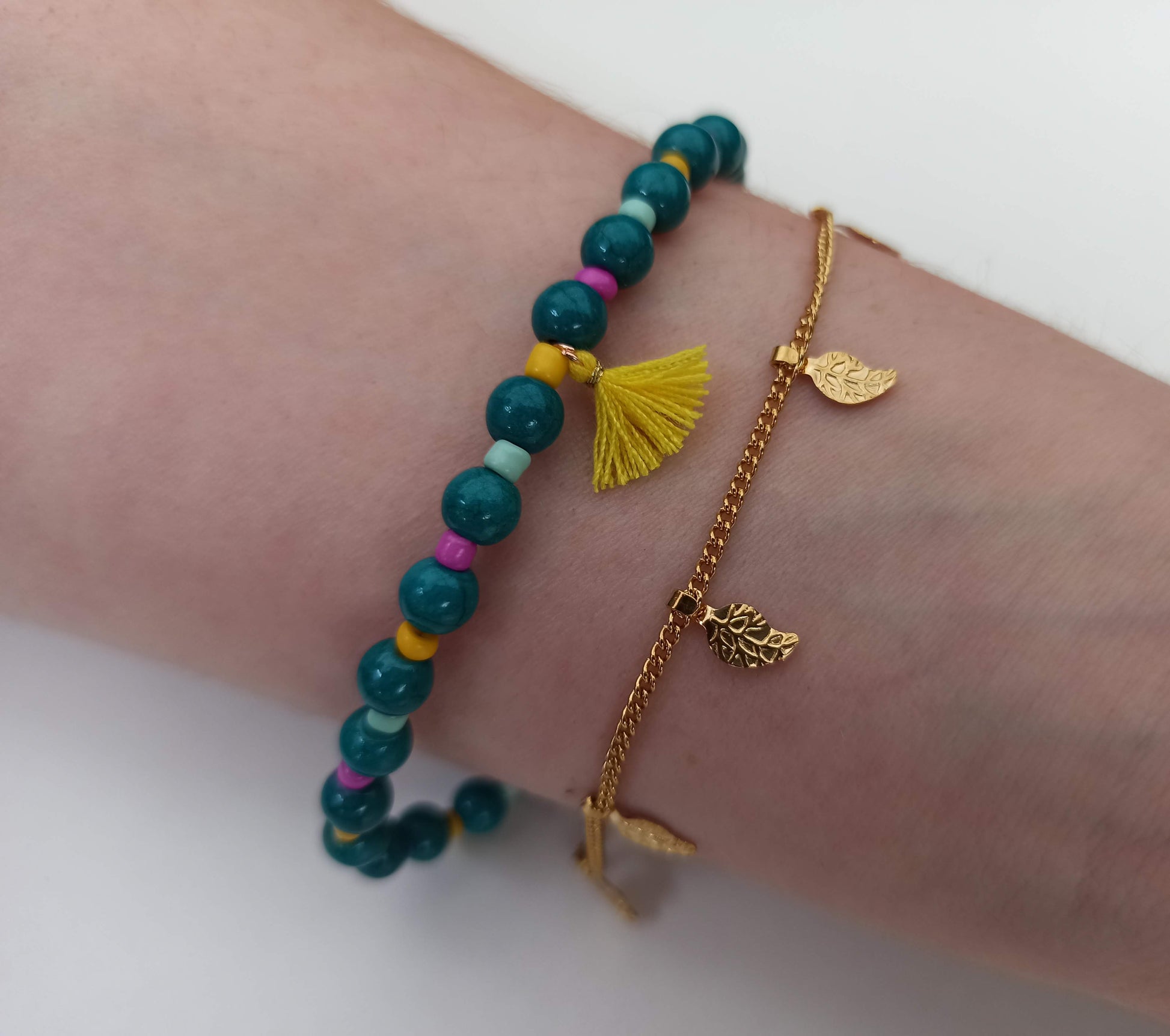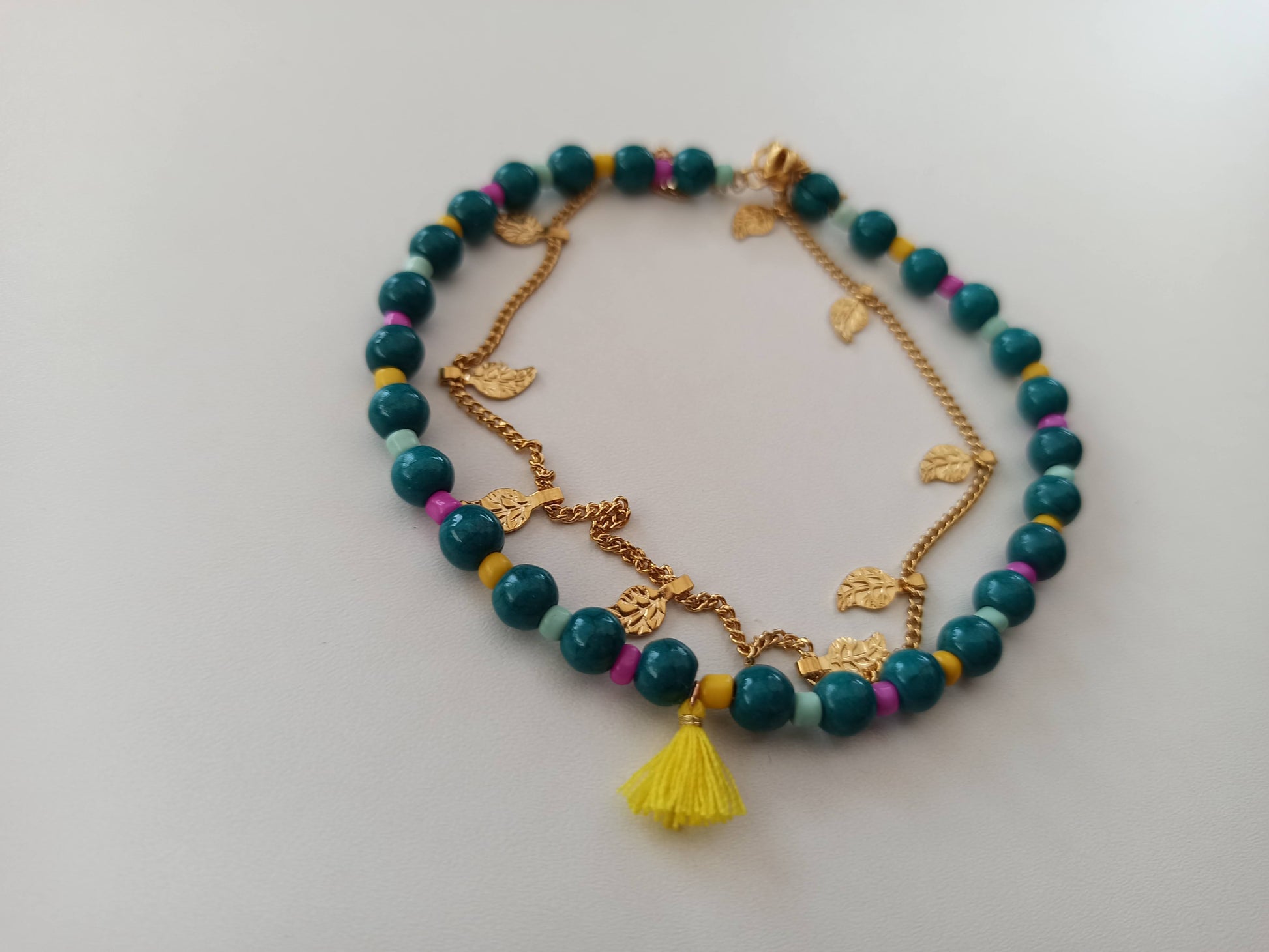 Enkelbandje Petrol - Parels & Kraaltjes + Multicolor Jasseron