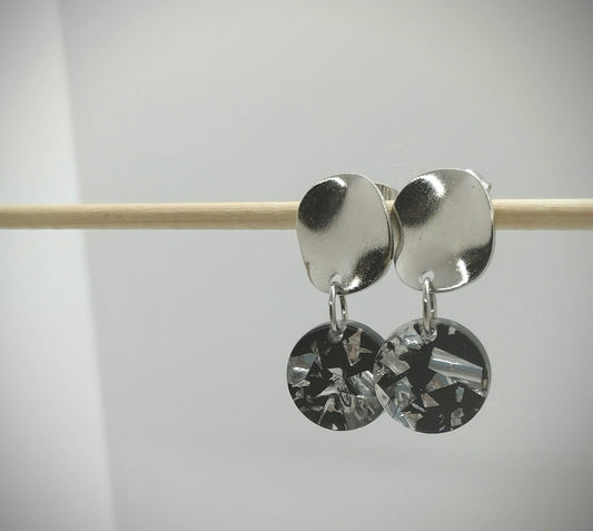 Oorbellenset Resin hangertjes Rond black/silver color (zilver - Nikkelvrij)