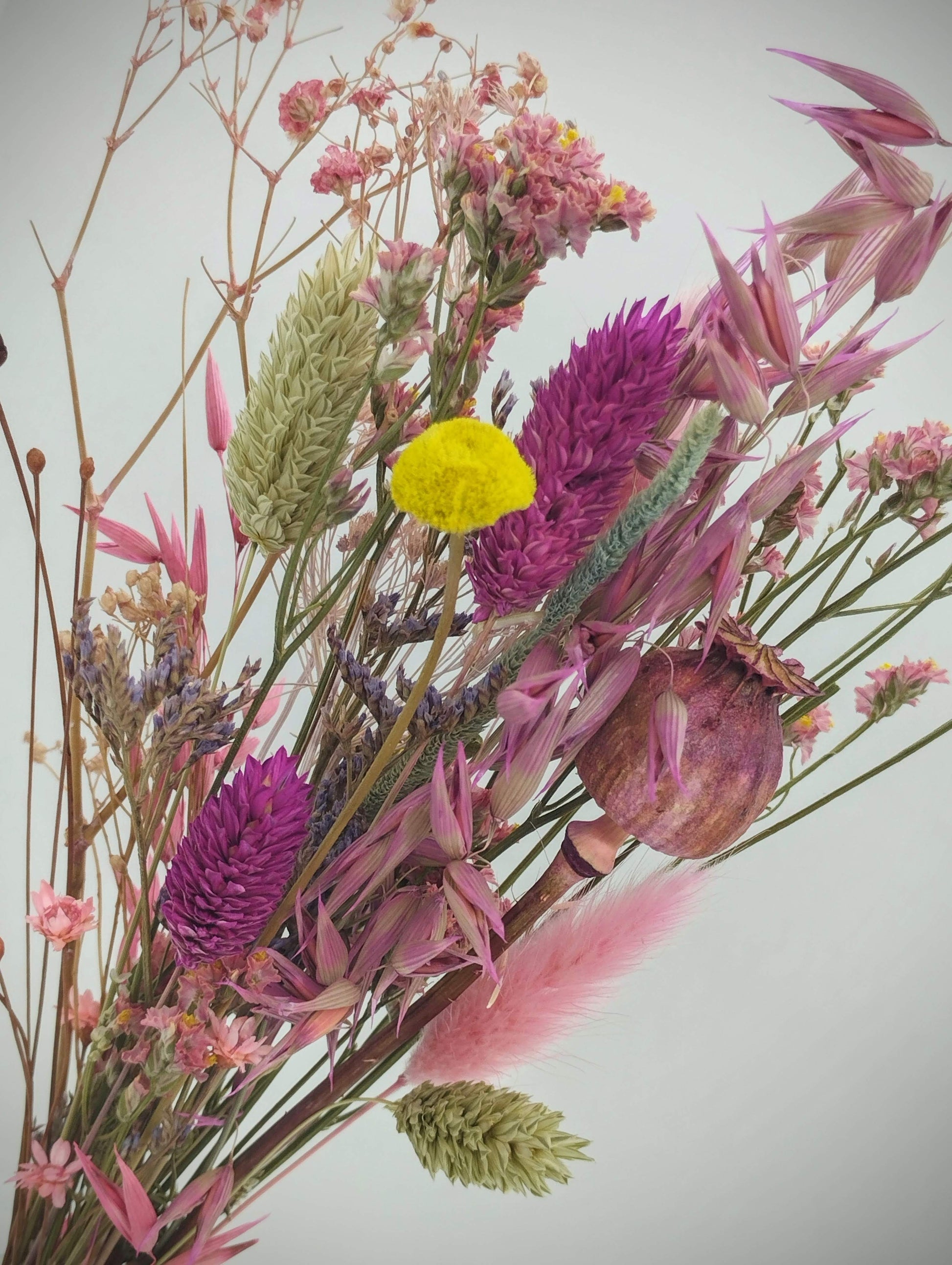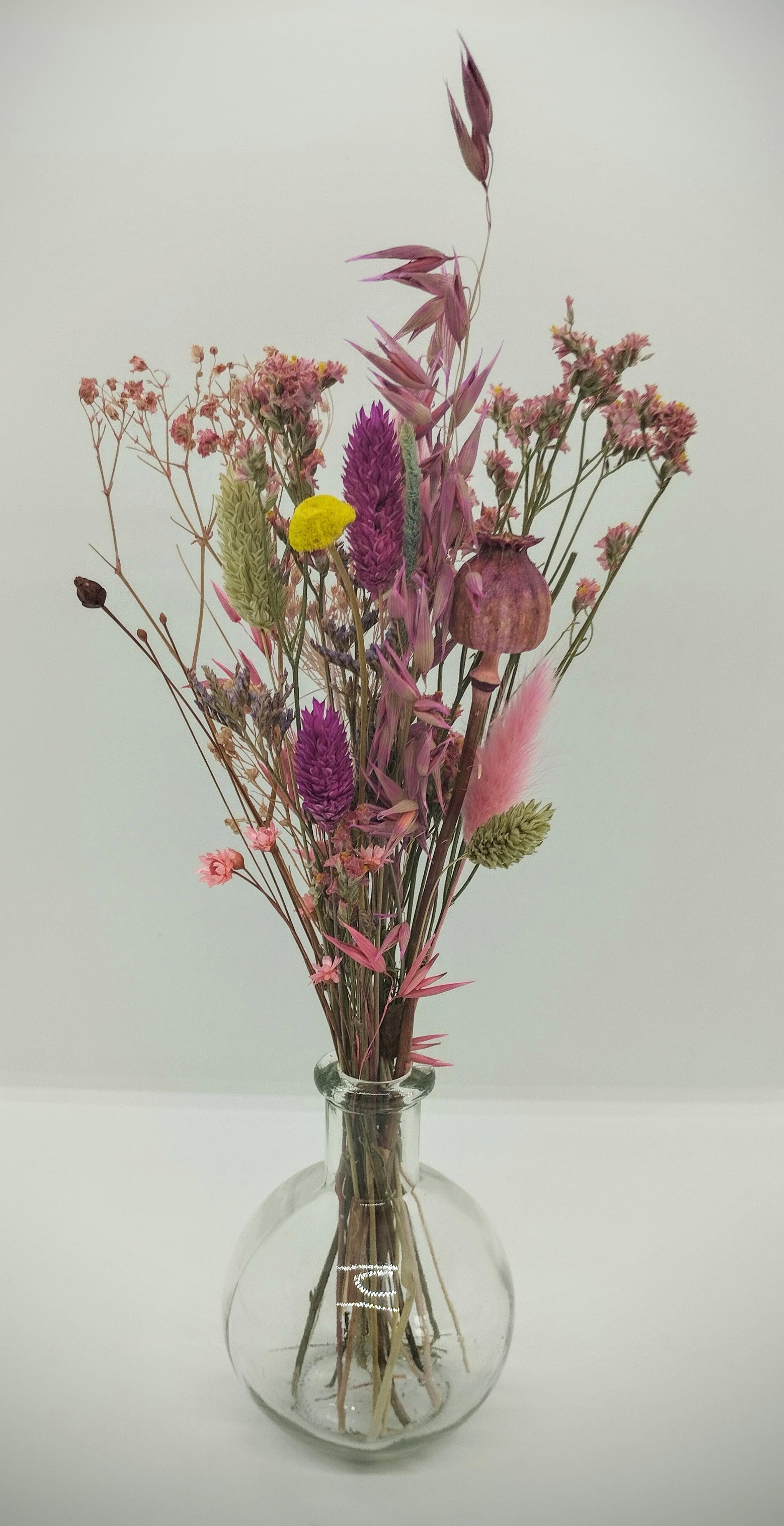 Haal een mooi decoratief stukje natuur in jullie kamer met onze mooie droogboeketjes in bolvormige vaasjes.