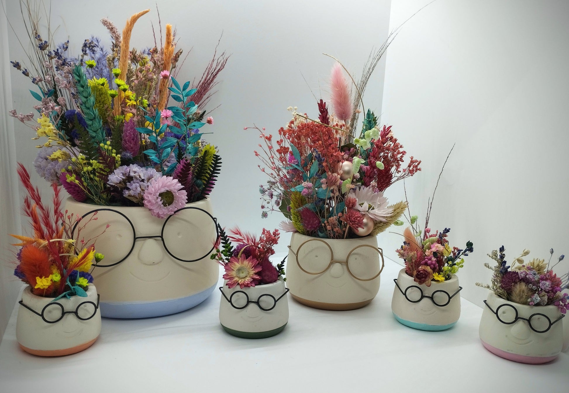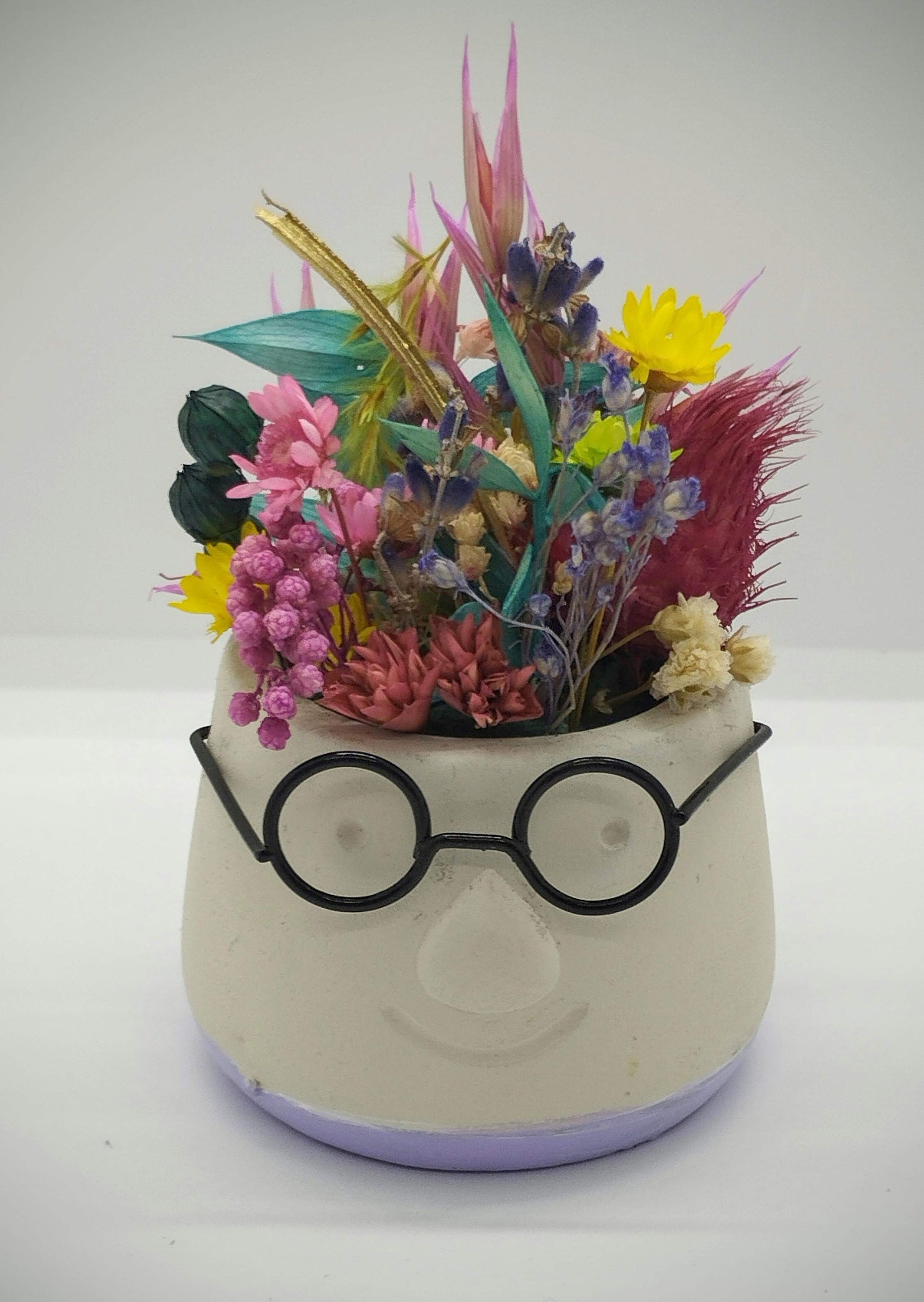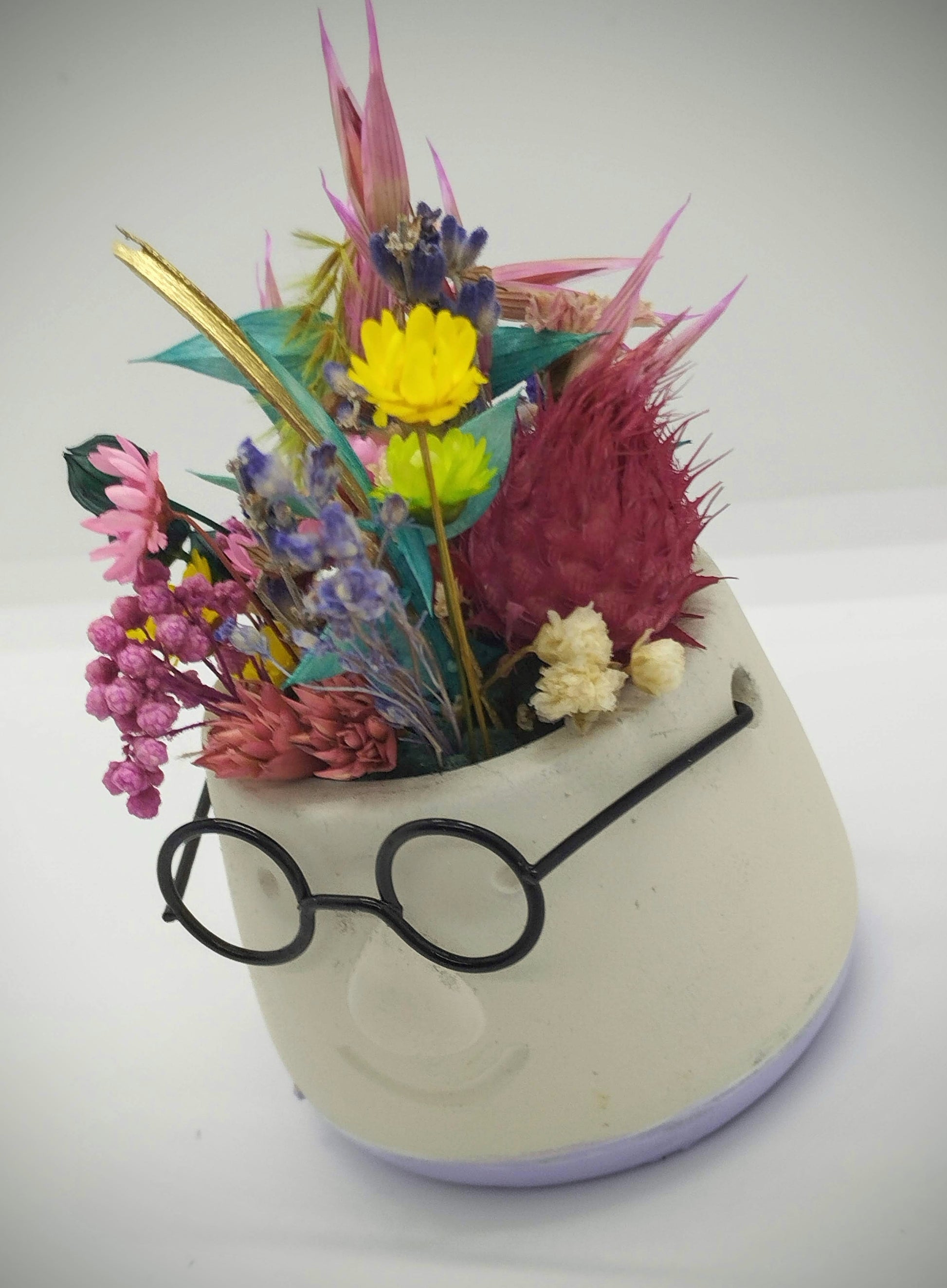 MINI Plantenpotje met gezichtje & droogbloemetjes