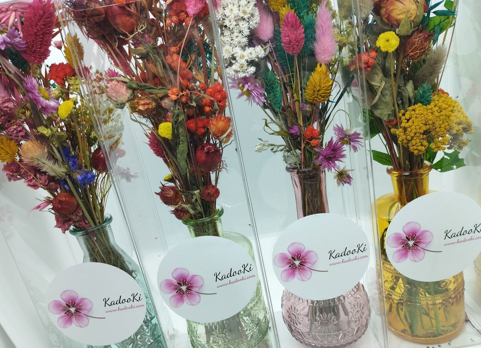 Haal een mooi decoratief stukje natuur in jullie kamer met onze mooie droogboeketjes in kleurrijke vaasjes.