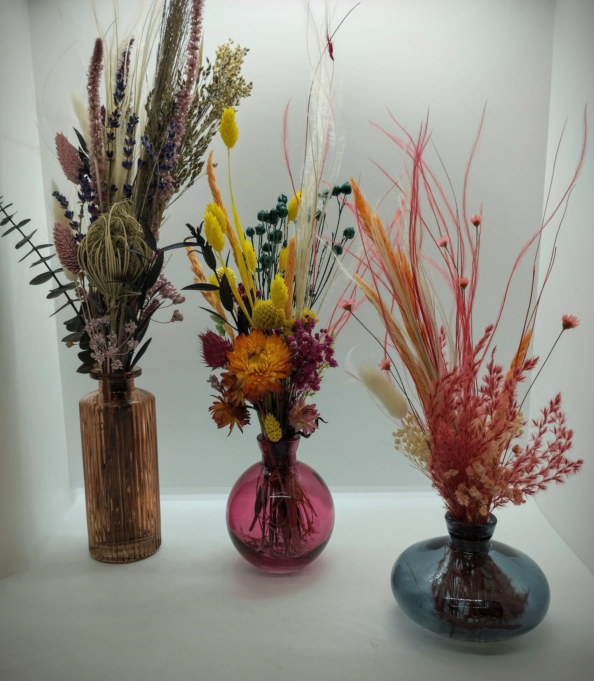 Haal een mooi decoratief stukje natuur in jullie kamer met onze mooie droogboeketjes in kleurrijke vaasjes.
