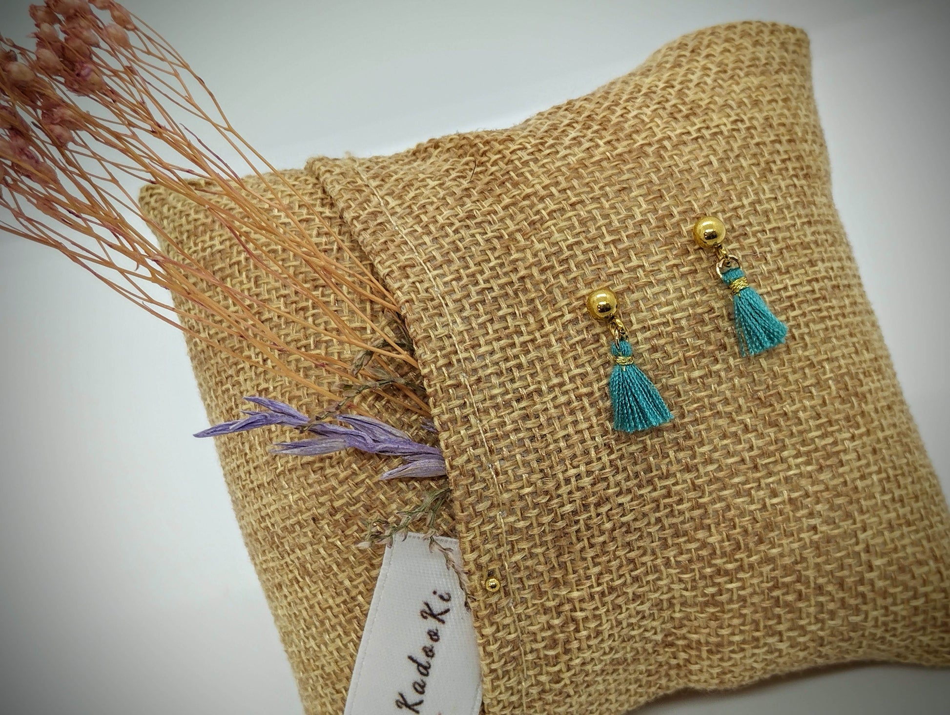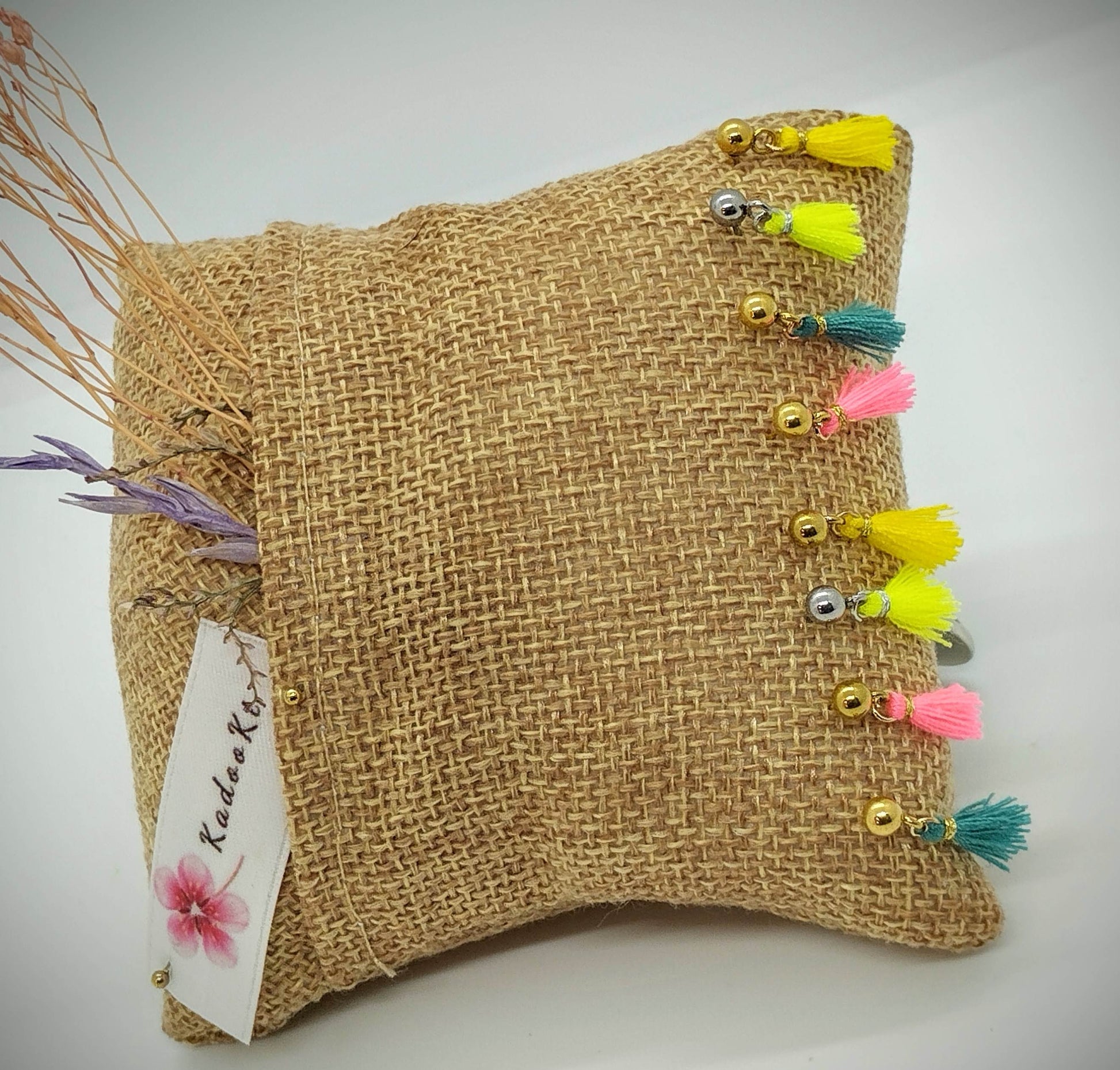 Deze oorbellenset werd handgemaakt bij Kadooki en bestaat uit 2 RVS stekertjes (nikkelvrij) voorzien van een Kleurrijk kwastje.