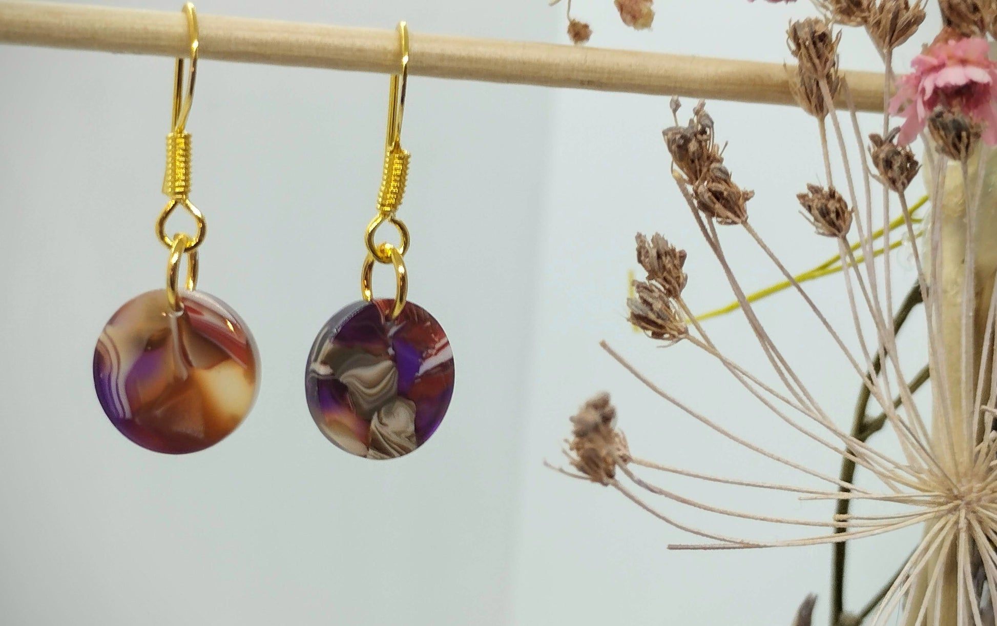 Oorbellenset Resin hangertjes Rond Mixed Color (Goud- Nikkelvrij)