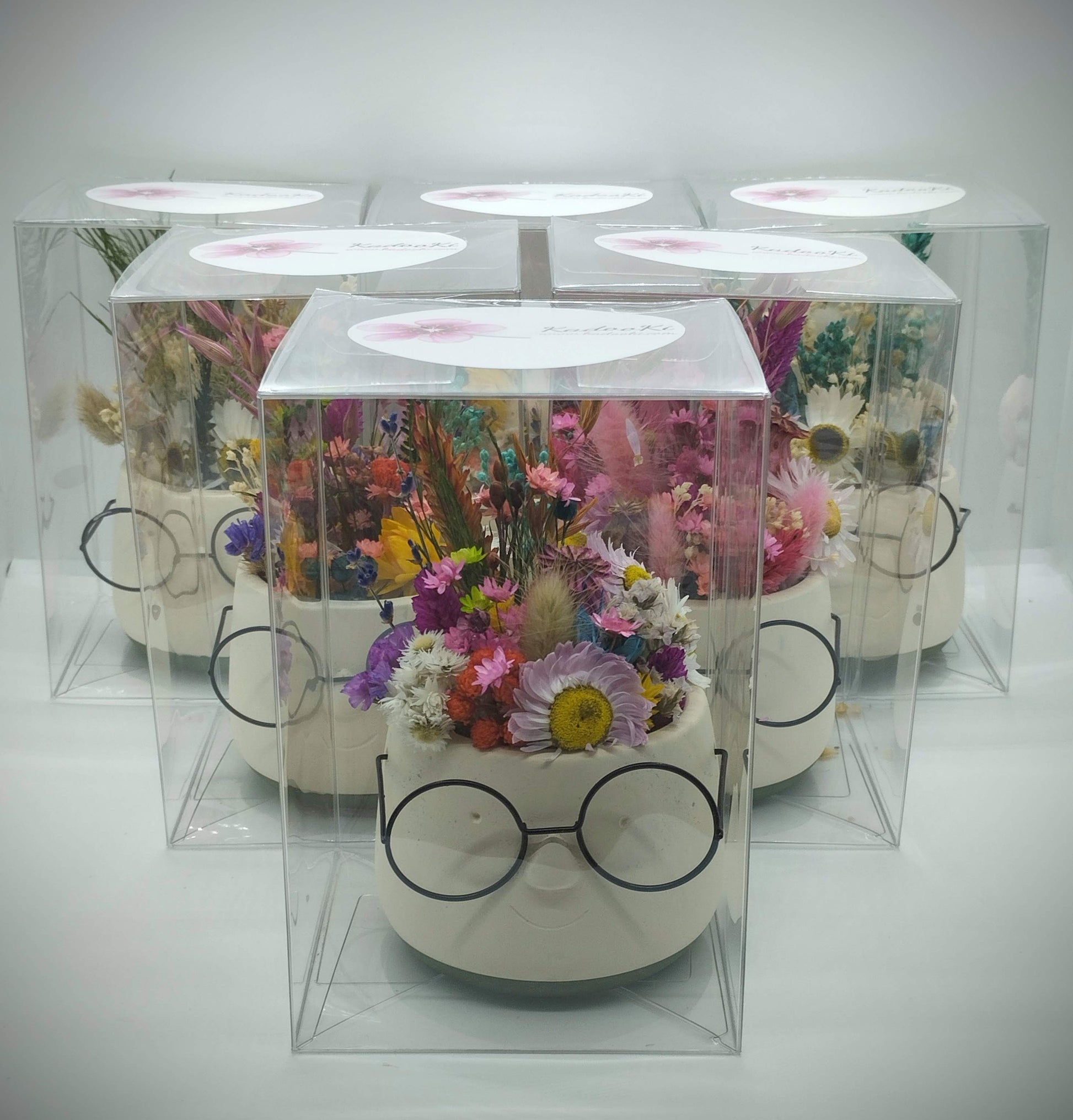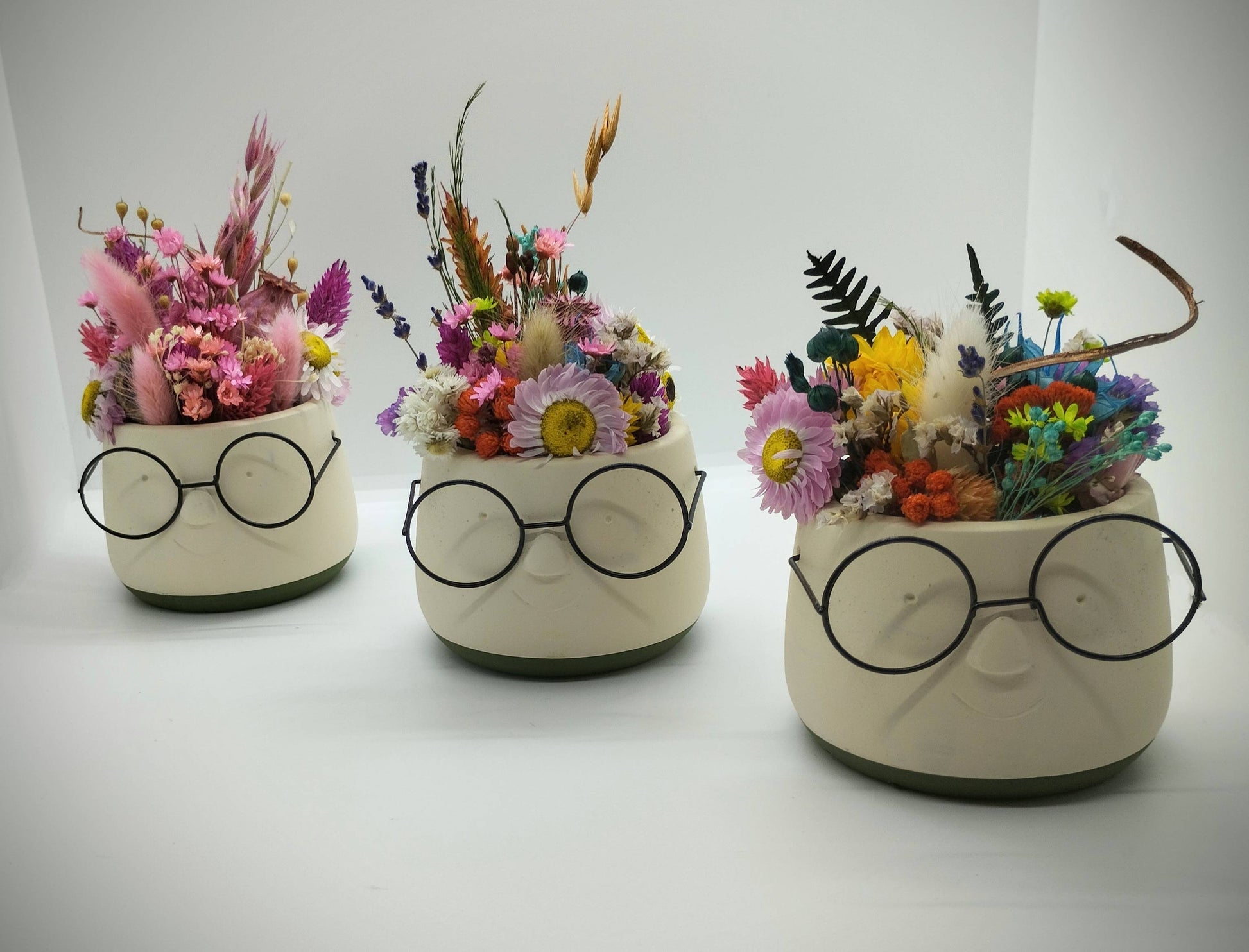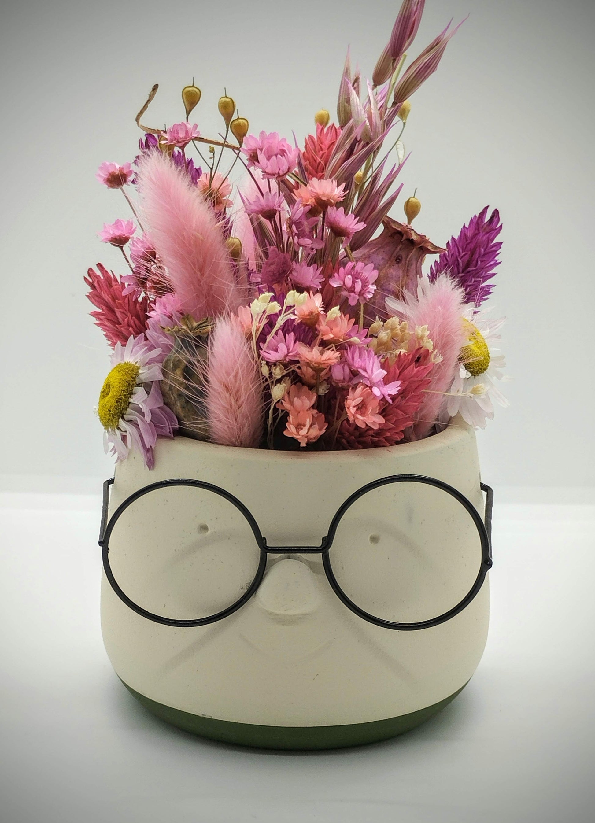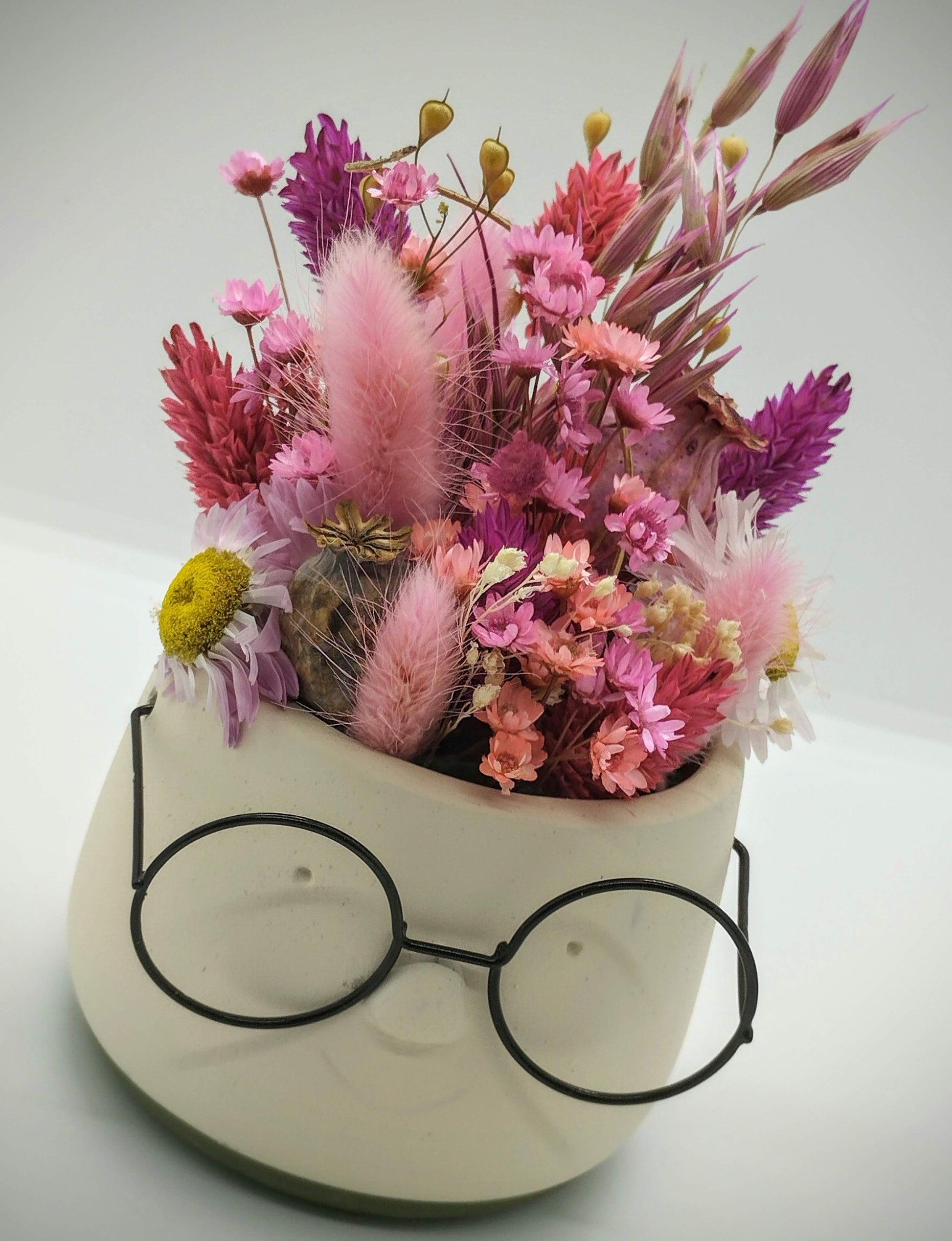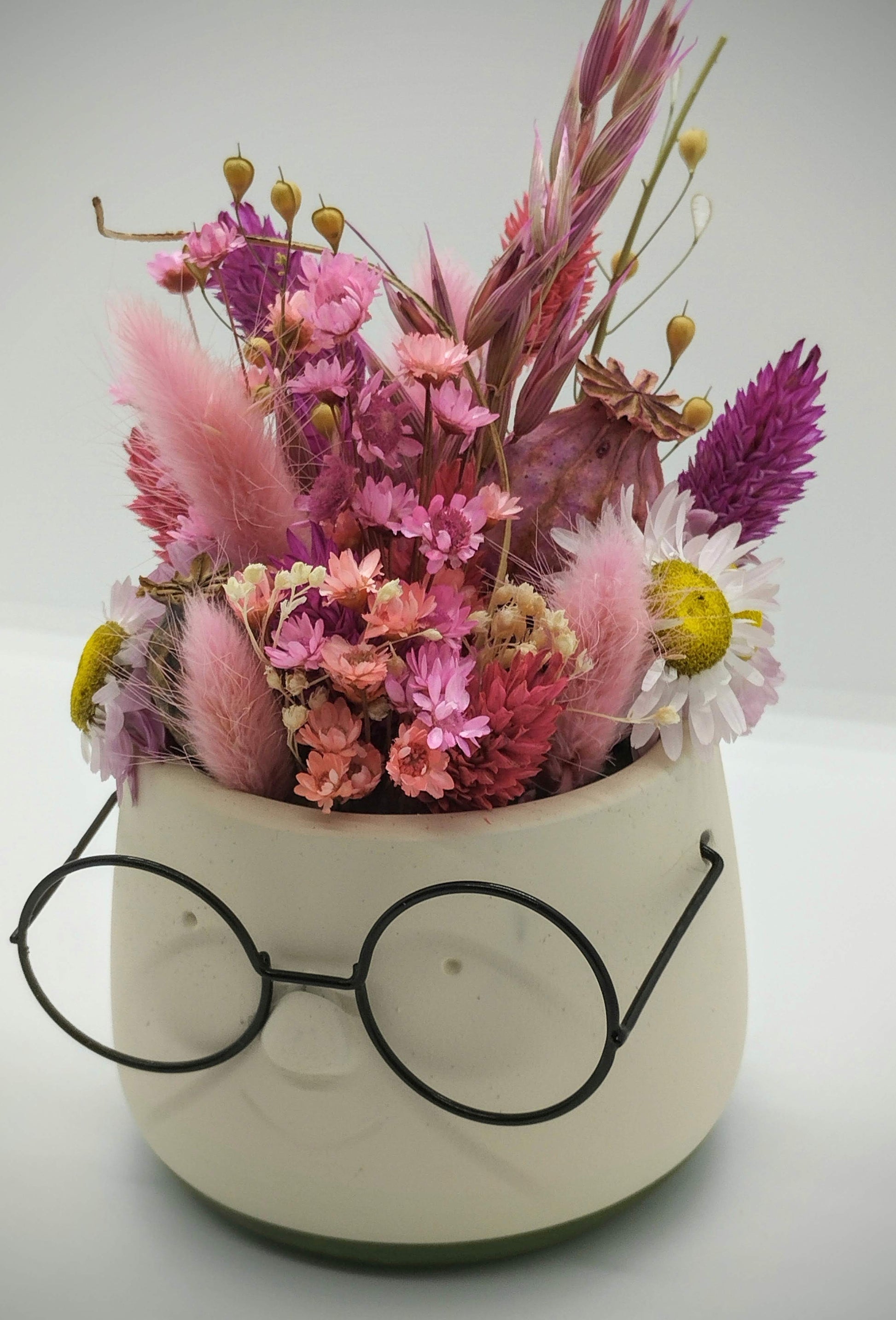 Plantenpotje met gezichtje & droogbloemetjes - Small