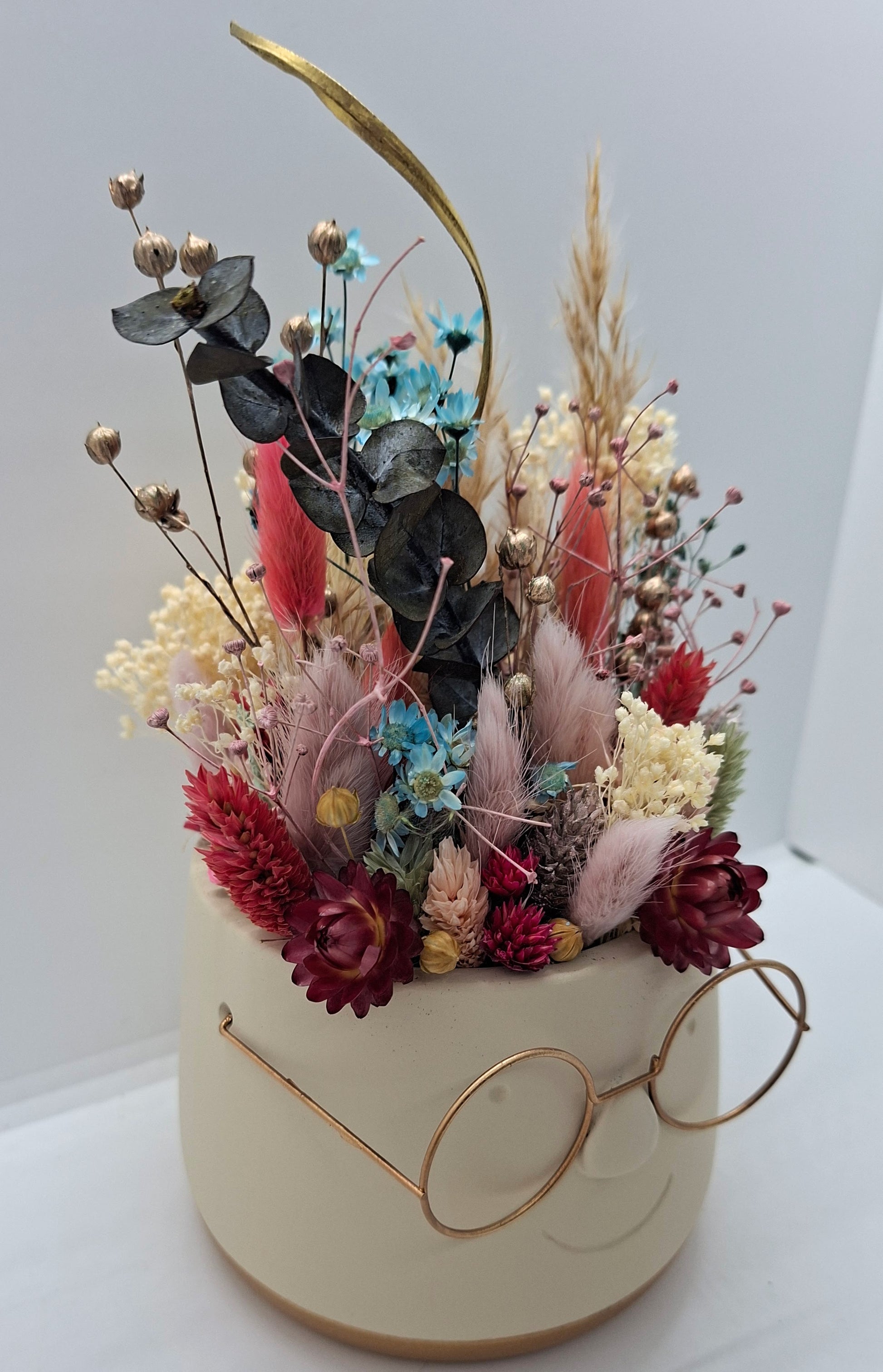 Plantenpotje met gezichtje & droogbloemetjes - Medium