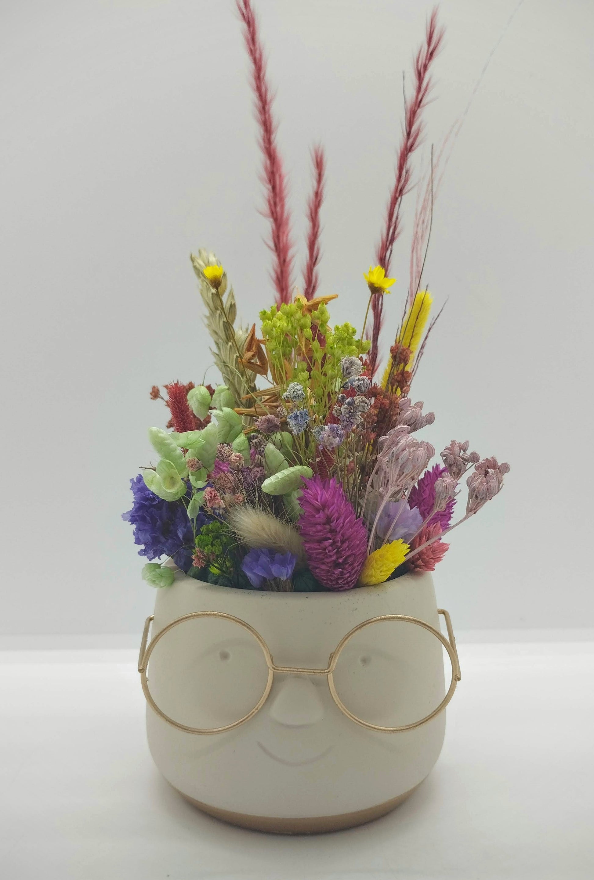 Plantenpotje met gezichtje & droogbloemetjes - Small